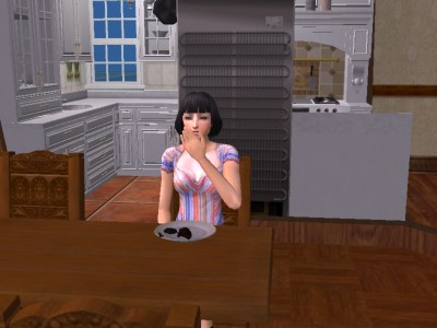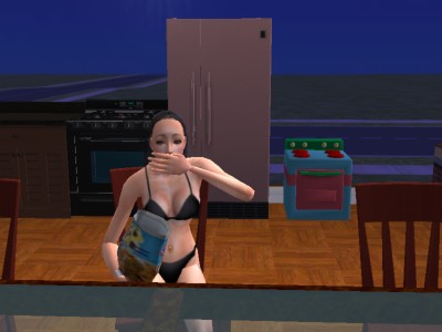 明け方に小腹の空いた悠子さん。クッキーをほおばっています。