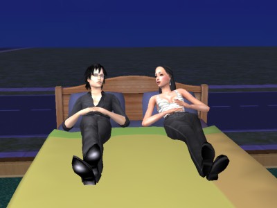 夫婦は寝室でリラックス中です。