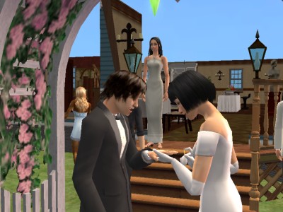 参列者の足並みがそろわないまま、指輪交換です。