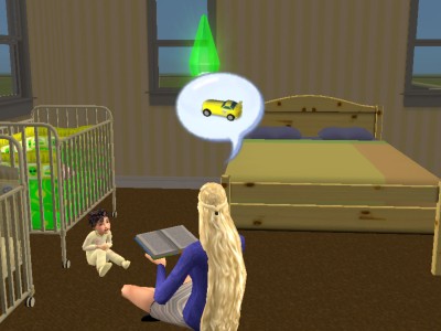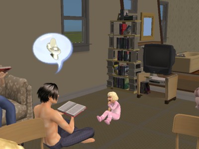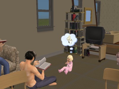 この世界のシムたちは、みんなこの本を読んでもらって大きくなるのです。