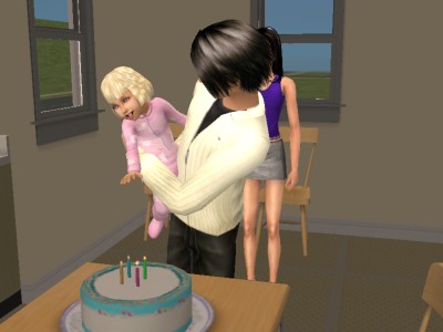 お父さんに抱っこされて、ロウソクをふーっと……、