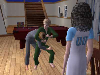 哲郎君が衛君を捕まえています。