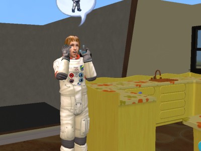 宇宙飛行士になって以来、自宅からすでに宇宙服で出勤する圭司君。