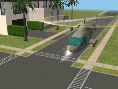 表に軍用ヘリが……。