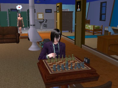 談話室では素也君が一人チェスの練習。